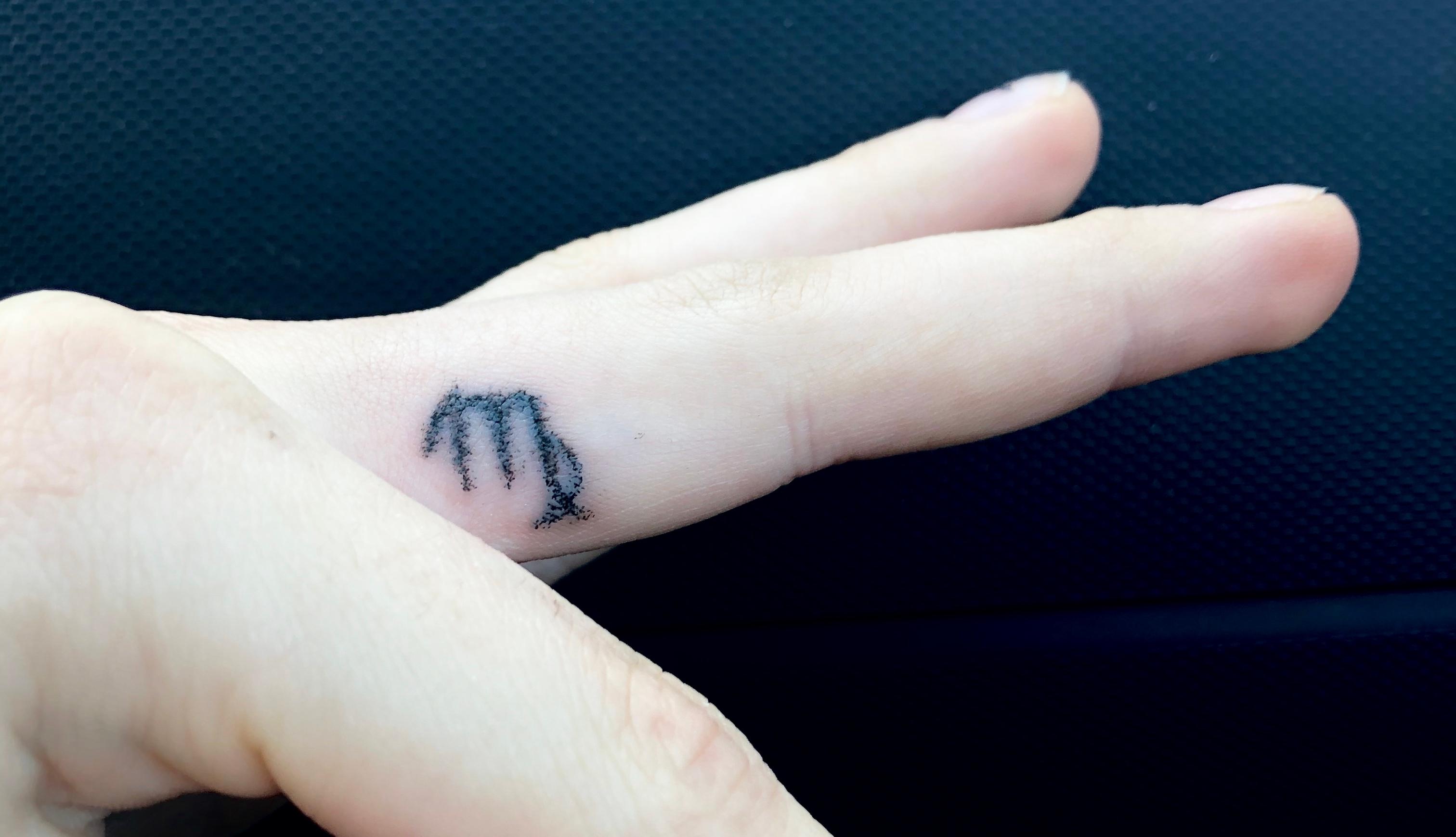 Bisher unauffällige Tattoos könnten ebenso anfangen. Sollten auf jeden Fall vor dem Tätowieren. Bein einer Tätowierung am Finger gibt sich das Motiv erst zu erkennen wenn die Finger gespreizt werden.